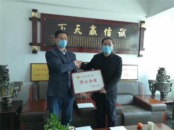 最后泉山区红十字会给彩神官方端网页版颁发了爱心企业牌匾,并合影留念。