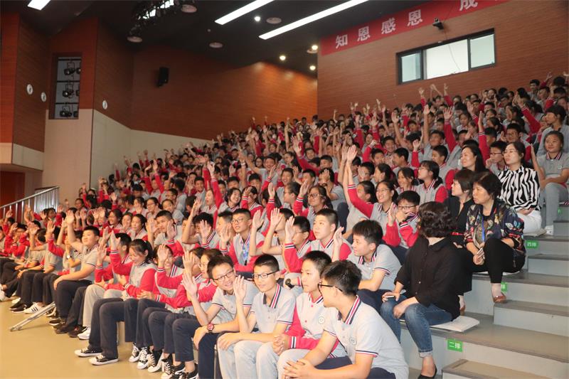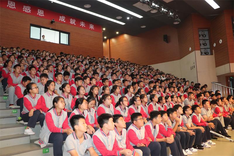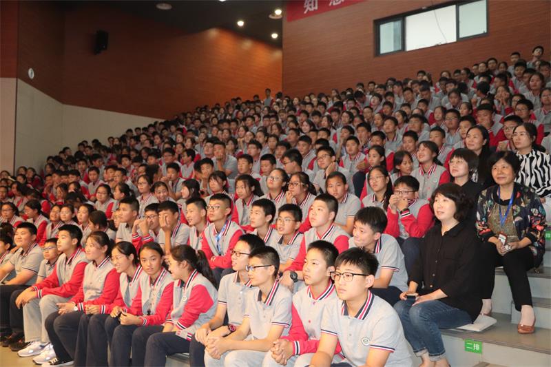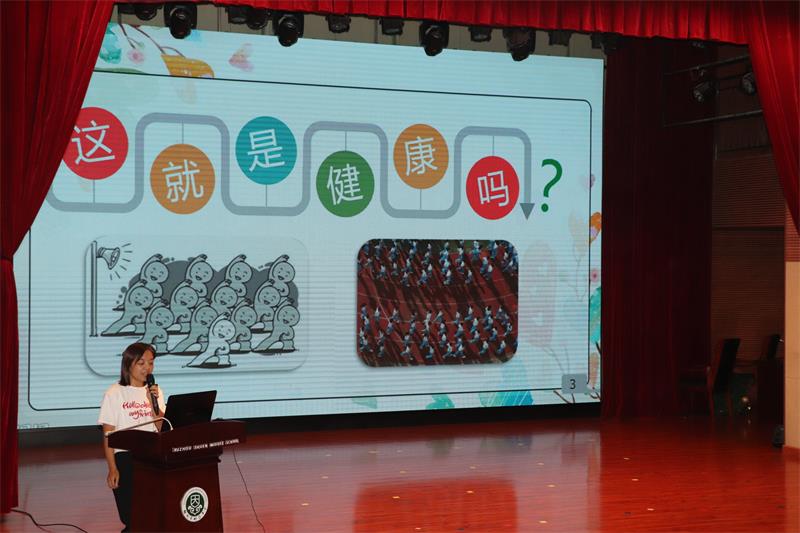刘老师将理论讲解与案例分析相结合,与同学们积极互动,使2019级初一新生在轻松愉快的氛围中,接受了一次心灵养护和健康洗礼。